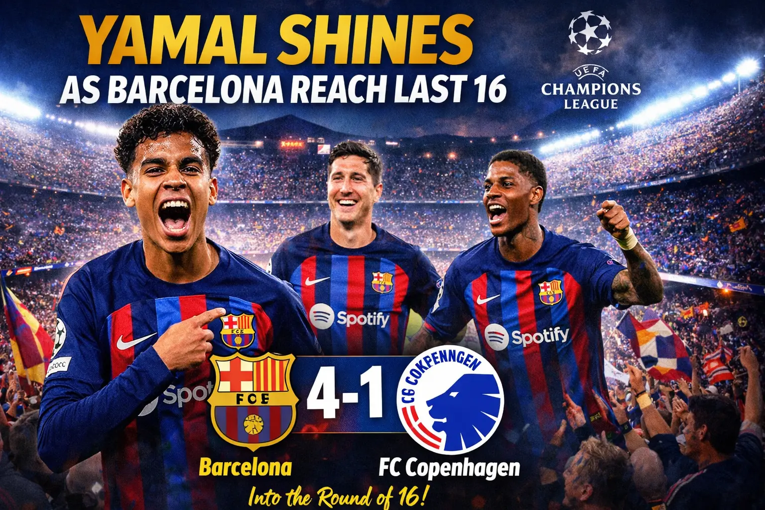Lamine Yamal Shines as Barcelona Beat Copenhagen to Reach Champions League Last 16