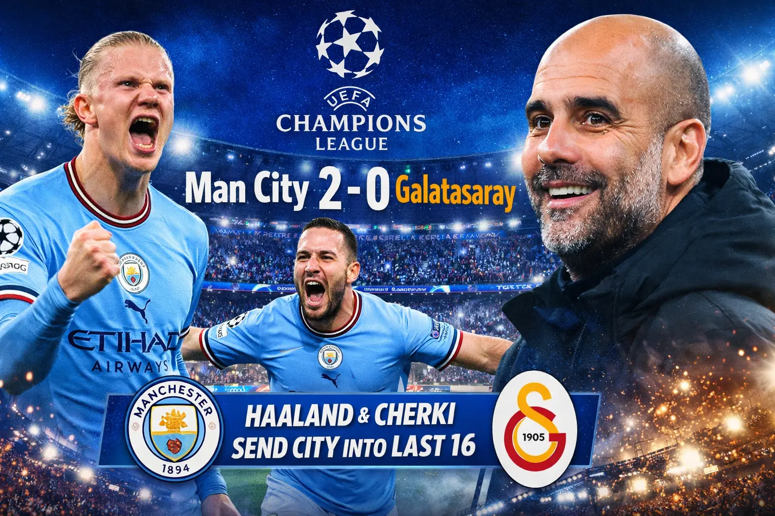 Haaland Ends Drought as Man City Beat Galatasaray 2-0 to Reach Champions League Last 16