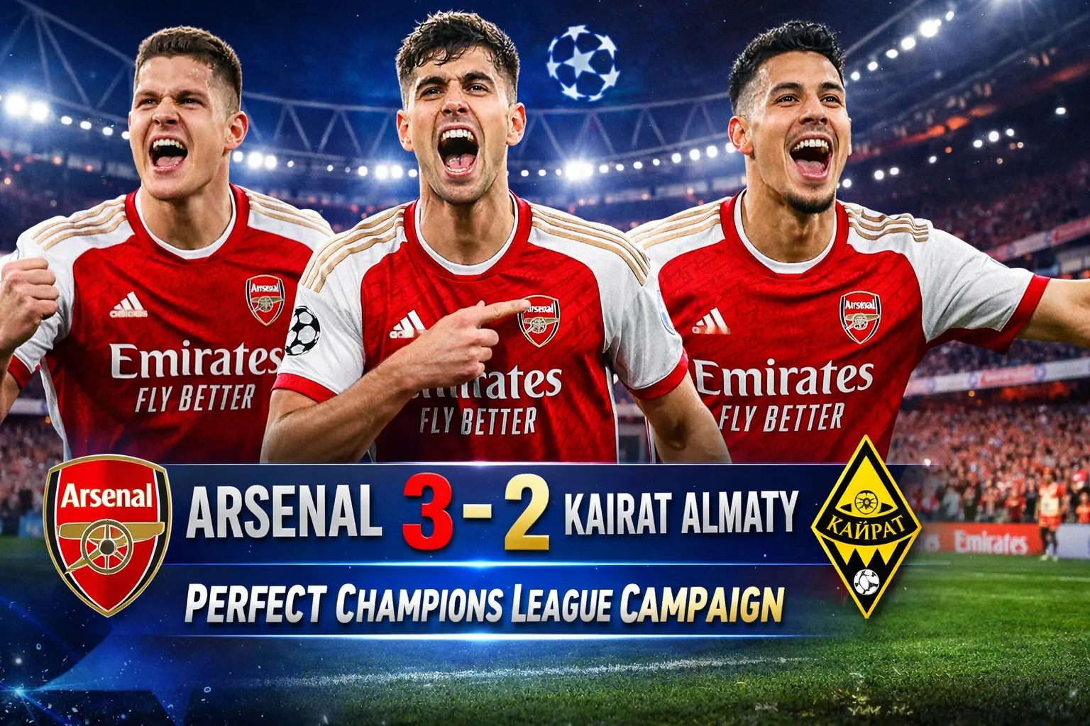 Arsenal Seal Perfect Champions League Run with 3-2 Win Over Kairat