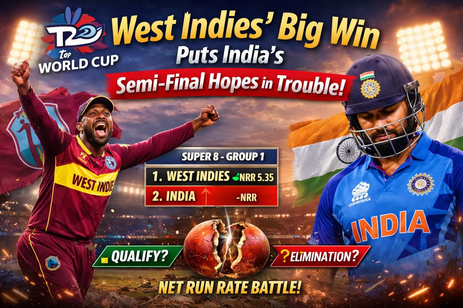 West Indies’ Big Win Complicates India’s T20 World Cup Semi-Final Race