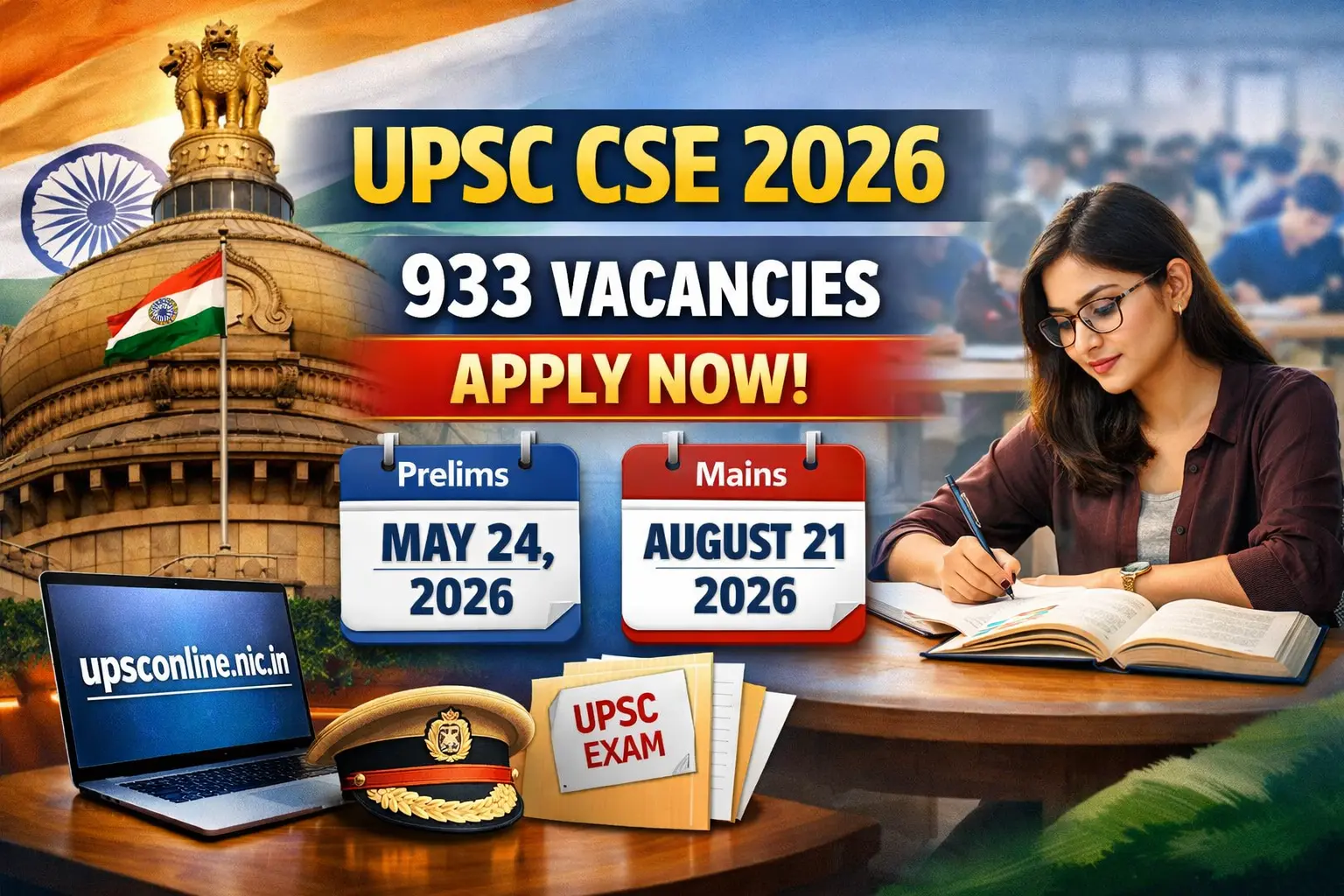 UPSC CSE 2026 Notification Out: Apply Online for 933 Posts, Prelims on May 24